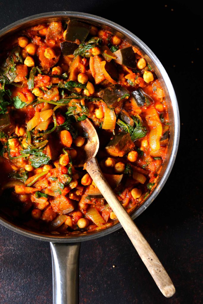 This eggplant spinach and chickpea curry can be made a day ahead if you like.