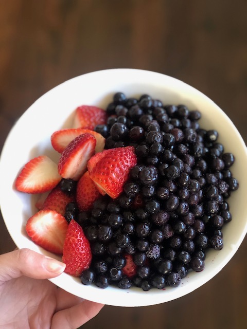 You can use your favourite mix of berries. I’ve used a combination of fresh strawberries and frozen organic berries.